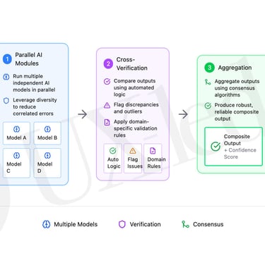 Cross-Verification: Outputs are compared for consistency in diagnoses, medication lists, and key findings. Automated logic flags any discrepancies (e.g., one model suggests a diagnosis the others omit). A rules engine checks for guideline adherence and ethical red flags (e.g., inappropriate recommendations).